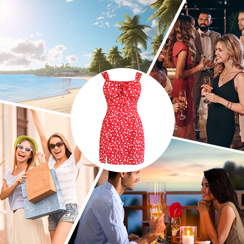 Package Includes: 1×Floral Print Spaghetti Strap Mini Dress